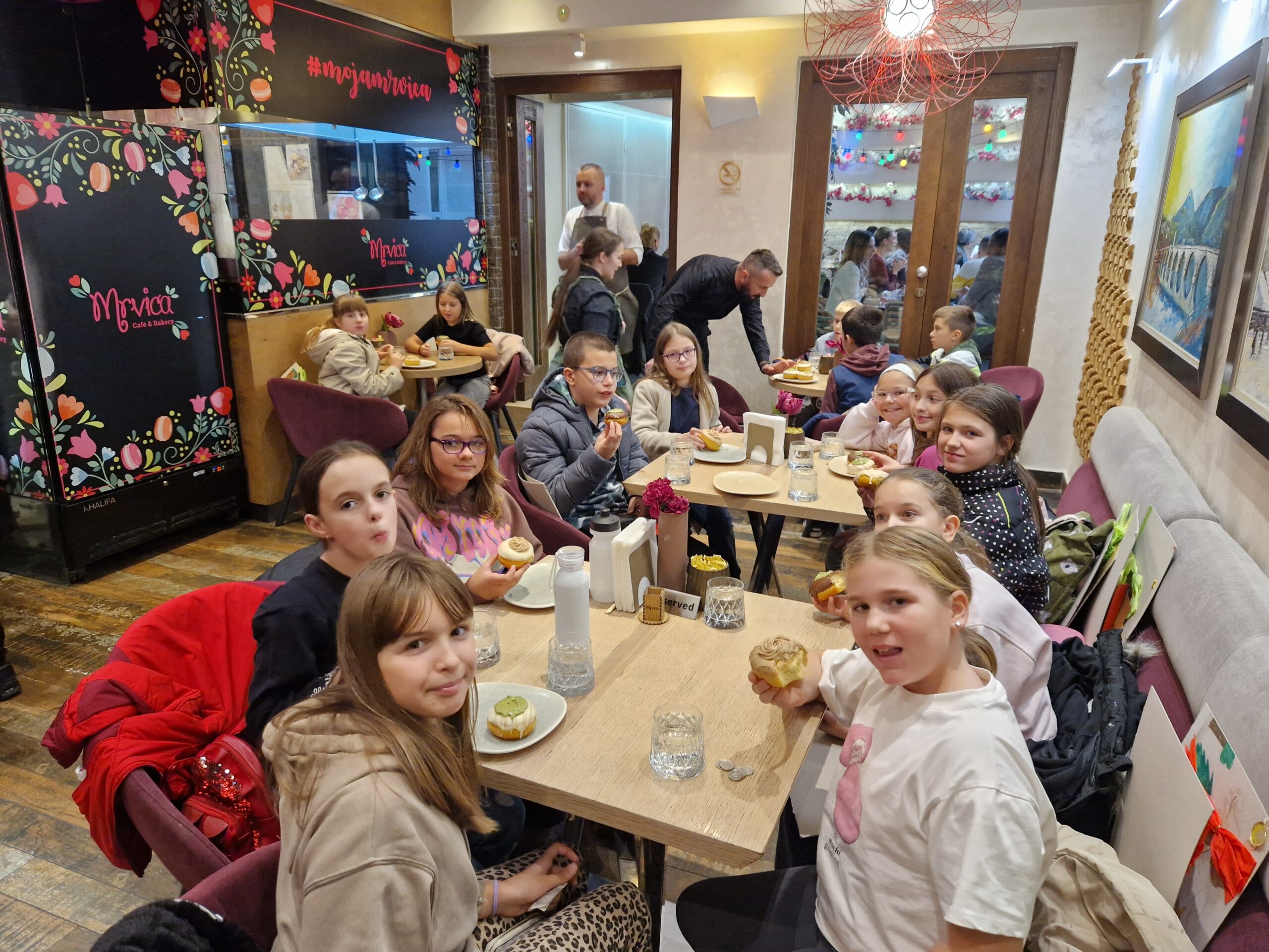 Naši učenici su danas proveli divno prijepodne u Centru za kulturu Jelićeva, gdje su učestvovali u likovnoj radionici i pokazali svoju kreativnost, maštovitost i ljubav prema umjetnosti. 🎨✨Nakon radionice, druženje su nastavili u slastičarni Mrvica, gdje su se zasladili ukusnim  krofnama i uz osmijehe prepričavali dojmove s radionice. 😄💛 Dan ispunjen bojama, smijehom i slatkim trenucima ostat će im u lijepom sjećanju! 🌈💕
