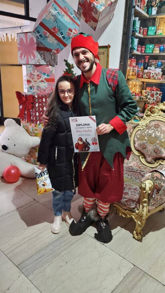 U Historijskom muzeju se trenutno održava izložba za djecu “Polarni muzej Djeda Mraza”. Tim povodom bilo je organizovano i likovno natjecanje na temu “Djed Mraz u mom gradu”. Naša učenica Ilma Hodzić,IV3, je osvojila 2. mjesto i kao nagradu dobila paketić i obilazak “Polarnog muzeja Djeda Mraza” sa cijelim razredom. Izlozba ima i zabavni i edukativni karakter,a kroz sve ih je proveo vilenjak Klupko koji je Ilmi uručio diplomu i paketić.